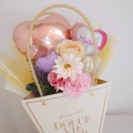 2023年新作 ギフトバッグにバルーンアレンジ花束タイプが入っている作品です。サイズは高さ30cm程度、横幅20cm程度、奥行き15cm程度です。いつものお花束でなくバルーンで出来ているバルーンアレンジタイプ。今年は、ちょっと違うね」とお母さんも、周りの友達に自慢することになるでしょうね。