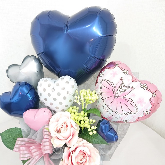 爽やかなブルー基調の組み合わせバレエ発表会プレゼント 青ベースのバレリーナバルーンアレンジ  pb0089