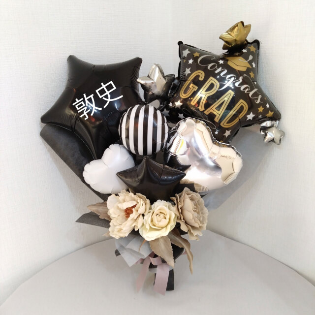 2026新作 卒業おめでとうのプレゼント オリジナル名前入ります ブラック花束タイプバルーン 「卒業おめでとう」 卒業、卒園、結婚式、発表会 花束タイプ 高さ50cm幅46cm  sp0070