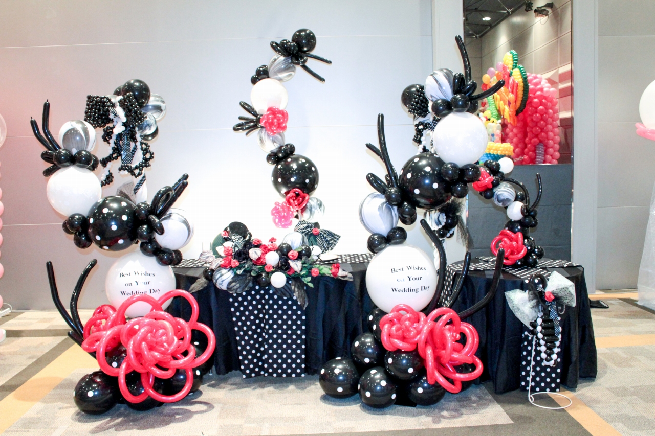 バルーンは可愛いだけでなく、黒をメインにしたモノトーンのアレンジもあります。最近ではバレエ発表会、ダンス発表会、誕生日、イベントにも人気です。