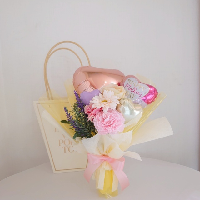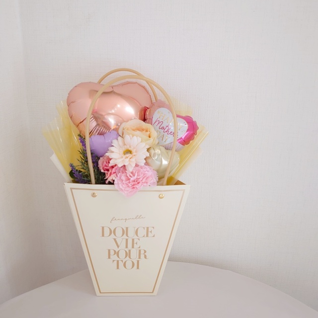 • 母の日バルーンギフト ノーブルギフトバック アイボリー 「母の日ギフトバックバルーンアレンジ」 hm0049IV