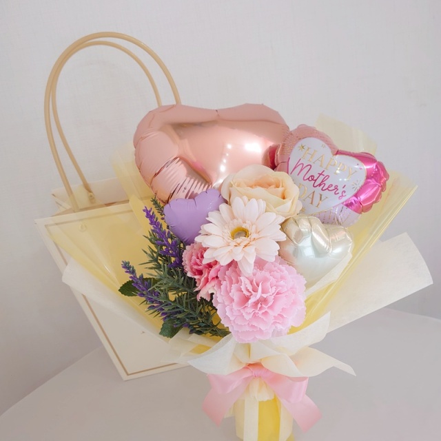 バルーンアレンジはとても軽く、持ち運びもしやすいです。何処にでも飾って置けると人気です。